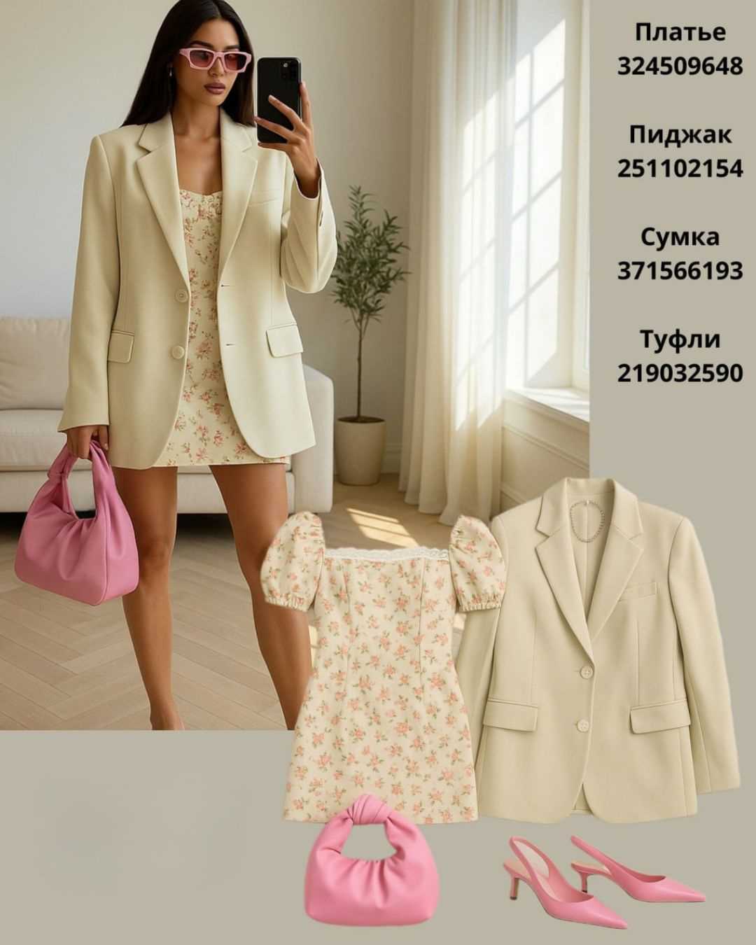 Светлое платье с розовыми цветочками идеально сочетается с розовыми аксессуарами, создавая нежный и целостный образ.